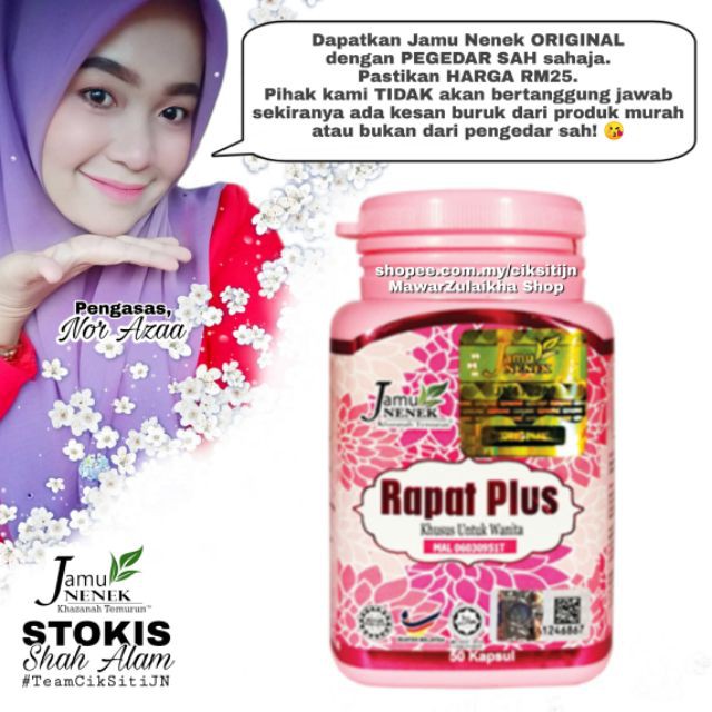 Jamu Nenek Rapat Plus Hof Beauty from hof.my π baca bismillah & selawat 3x testimoni. Yati jamu nenek jamu nenek rapat plus nak ketat montokkan payudara tegangkan yang mane dah kendur nak kembali bentuk badan kalah anak dara. Lulus kkm mal 06030951 t. Menaikkan seri muka dan awet muda Mengurus dan mengecilkan bentuk tubuh secara sekata. Kesan sampingan jamu nenek rapat plus / nieza anggun shop: Merawat senggugut dan menstabilkan kitaran haid. Amirna air ajaib akar kayu 1's rm 12.00 rm 8.00.