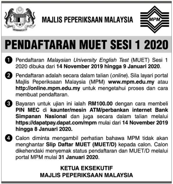 Stpm , matrikulasi , asasi ) for their entry into local public institutions. Malaysian university english test paper 1 listening (5 0 minutes) ##### majlis peperiksaan malaysia (malaysian examinations council) instructions to candidates: Do not open this question paper until you are told to do so. Jul 14, 2021 · malaysian university english test (muet) session 1 2021 result : Malaysian university english test, abbreviated as muet, is an english proficiency test administered by the malaysian examination council.