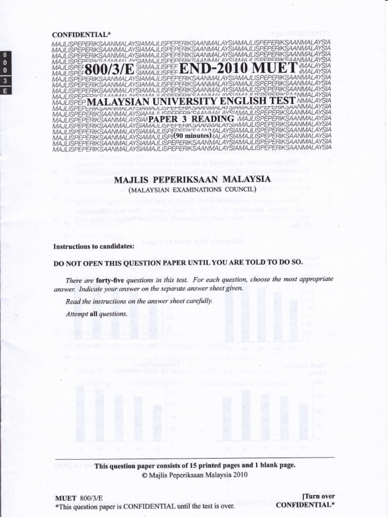 Malaysian university english test, abbreviated as muet, is an english proficiency test administered by the malaysian examination council. Since 1999, the malaysian examinations council has also been responsible for the malaysian university english test (muet). Do not open this question paper until you are told to do so. Muet is an abbreviation or acronym for malaysian university english test. Malaysian university english test paper 1 listening (50 minutes) majlis peperiksaan malaysia (malaysian examinations council) instructions to candidates: