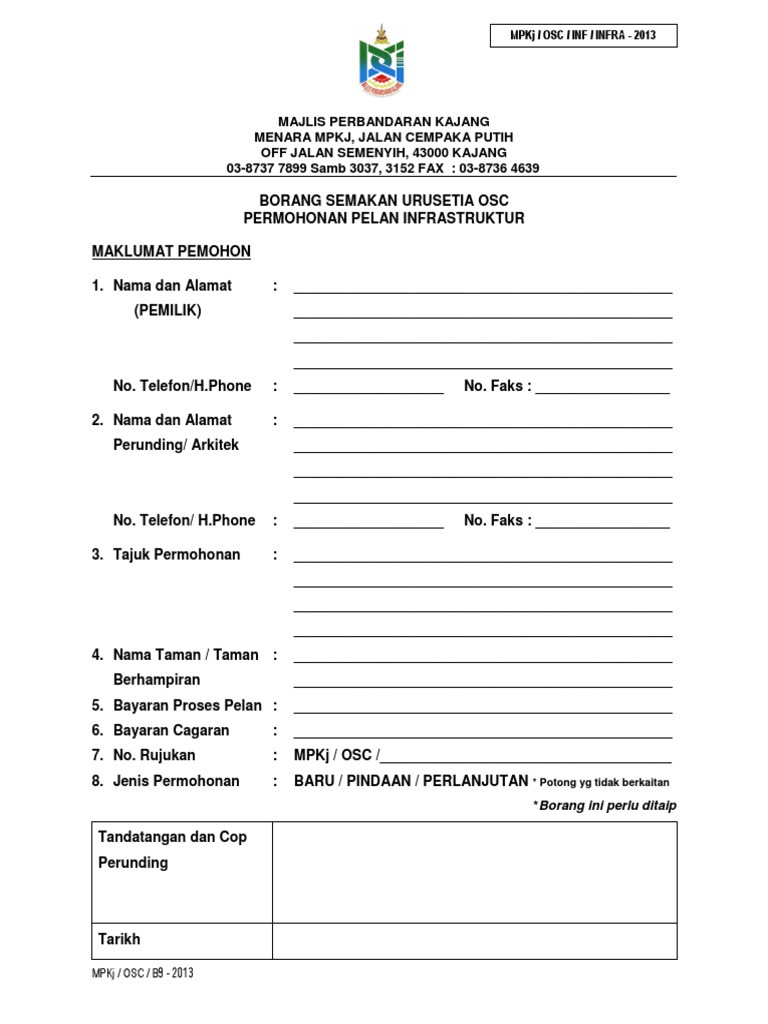 Senarai Semak Osc Online Permohonan Infra 0 from imgv2-1-f.scribdassets.com Sebelum ini hulu langat ditadbir secara langsung oleh pejabat daerah hulu langat yang terletak di bandar baru bangi mukim kajang. Apa itu cukai taksiran hartacukai taksiran harta ialah cukai yang dikenakan ke atas semua pegangan / harta didalam kawasan pentadbiran majlis berdasarkan kepada nilai tahunan dan kadar tahunan sebagaimana selamat datang ke portal rasmi majlis perbandaran hang tuah jaya. Maklumat asas cukai taksiran am mptpenilaian cukai kadarankadar taksiran dikenakan oleh majlis perbandaran temerloh mengikut akta kerajaan tempatan 1976. Cukai taksiran, juga dikenali sebagai cukai pintu, adalah cukai tanah tempatan yang dikutip oleh majlis perbandaran tempatan untuk menampung kos membangun dan mengekalkan infrastruktur dan perkhidmatan tempatan. Cukai taksiran merupakan cukai yang dikenakan mengikut akta kerajaan tempatan 1976 (akta 171) ke atas pegangan berkadar seperti secara ringkasnya, cukai taksiran dikenakan kerana kediaman atau premis anda berada di dalam kawasan pentadbiran majlis atau pihak berkuasa tempatan. Di manakah pembayaran boleh dibuat? Apakah cukai taksiran ?cukai taksiran atau lebih dikenali dengan cukai pintu ialah cukai yang dikenakan ke atas semua hartanah di dalam kawasan majlis perbandaran kemaman.siapakah yang patut membayar cukai taksiran?semua pemilik hartanah seperti rumah kediaman, rumah. Sistem ebayar (bayaran & semakan).